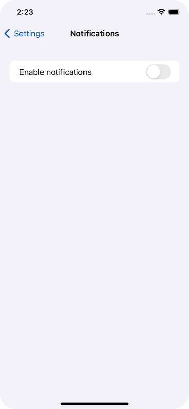 Settings → Gear icon(top-right)→ Connectivity and Notifications → toggle "Enable notifications" OFF.Keeping the app in the foreground is required for local discovery and connectivity to work; when the app is closed or backgrounded, iOS suspends the needed processes and local communication stops.
