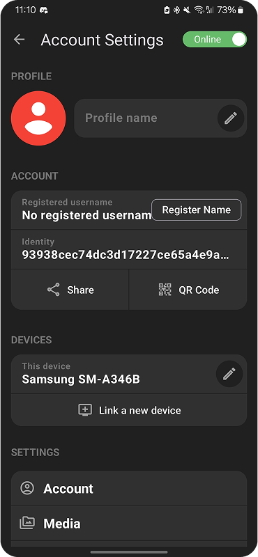 - Android: Open your account profile to find the Jami ID displayed under your name