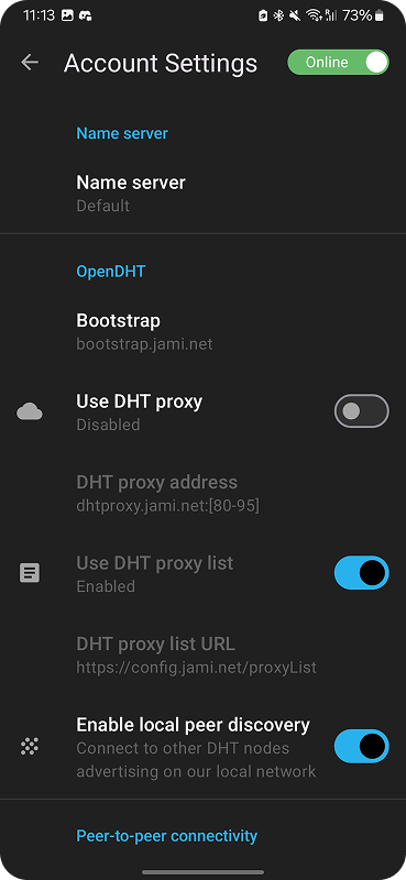 To enable it: Go to Settings → Connectivity → Switch to local DHT node